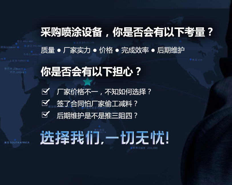 噴涂設備是根據(jù)您的產(chǎn)品,產(chǎn)量,場地大小,及具體的要求定制。